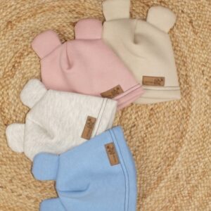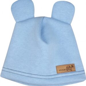 Teplá detská čiapka Kazum, bavlnená s uškami, modrá, veľ. 68/74