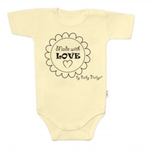 Body krátky rukáv Baby Nellys, Made with love, žltá, veľ. 68
