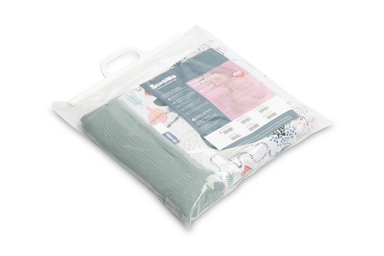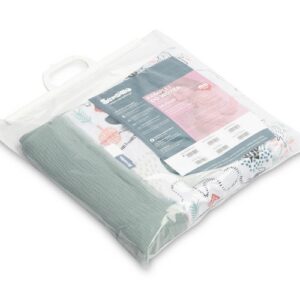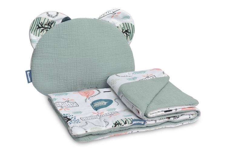 Táto krásna súprava vankúšika a dečky je vyrobená z jemného mušelínu a 100% bavlny, vďaka čomu zaistí vášmu dieťatku maximálne pohodlie.