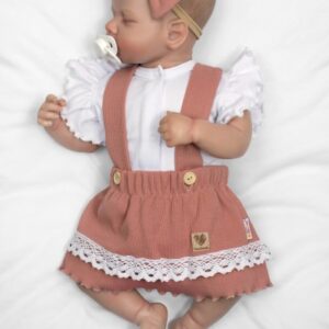Obsahuje celorozopínacie body s krátkym rukávom (volánikom), suknička s láclom z rebrovaného bavlneného materiálu + čelenka.