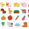 7 drevených blokov rôznych tvarov a farieb.