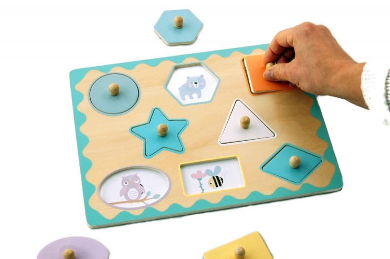 – rozvíja koordináciu rúk a očí tým, že musí dielik vložiť ná správne miesto,