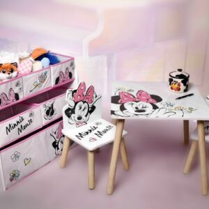 Nádherný detský stôl so stoličkami s roztomilou animovanou postavičkou Myškou Minnie z dielne Walt Disney poteší všetky deti. Farebný stôl so stoličkami je nevyhnutnou súčasťou detskej izbičky. Známa kreslená postavička rozžiari každú izbičku a zároveň vytvorí miesto na hranie, kreslenie, relaxáciu.