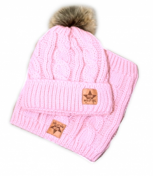 Baby Nellys Dvojvrstvová čiapka + šatka Palouček, smatanová, veľ. 104/110