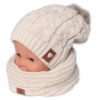 BABY NELLYS Zimná pletená čiapočka s šálom TEDDY s brmbolcami – sv. ružová, vel. 62/68