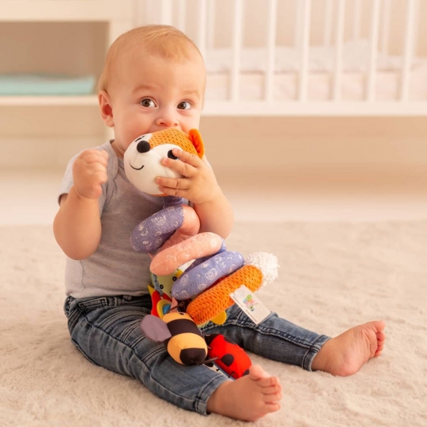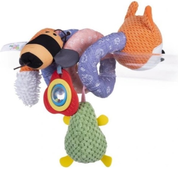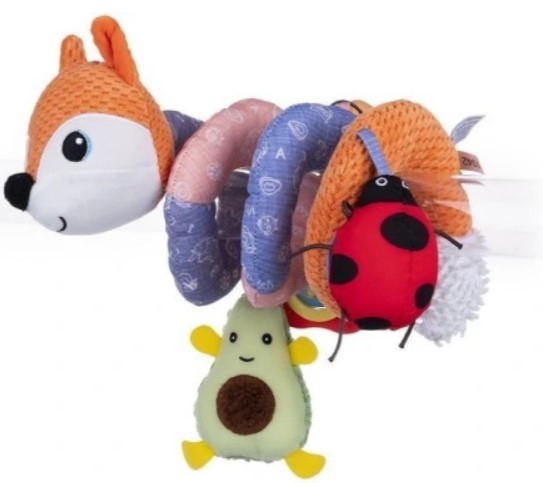 Líška obyčajná s veselým tímom vás pozývajú na multifunkčnú zábavu! Táto krásna špirála je vyrobená z rôznych materiálov, ktoré stimulujú hmat dieťaťa. Roztomilé avokádo vtipne hrká, prívesok s korálkami bude skvelým hryzátkom, lienka s bezpečným zrkadlom sa zoznámi s dieťaťom a včielka rozveselí okúzľujúcim pištením.