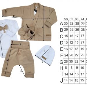 Veľ. 68 – dĺžka 35 cm, hrudník 2 x 21 cm, rukáv 17 cm.