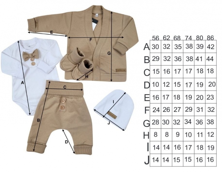 Veľ. 86 – dĺžka 42 cm, hrudník 2 x 24 cm, rukáv 20 cm.