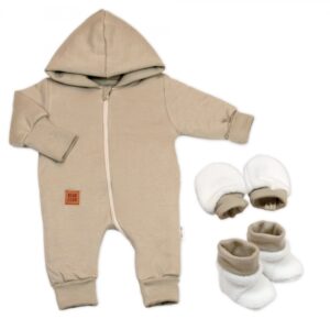 Bavlnený oteplený overálok s kapucňou, rukavičkami a topánkami – 3D sada Nature Baby Nellys.