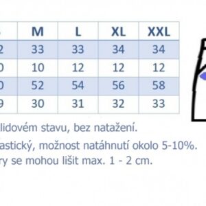 Rozmery sa môžu líšiť o 1-2 cm, merané v kľudovom stave bez natiahnutia.