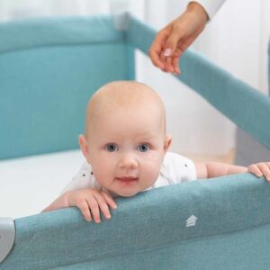 – bočný vchod – dvere s poistkou umožňujú dieťaťu samostatne vstúpiť do postieľky,