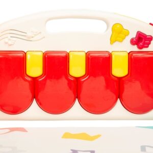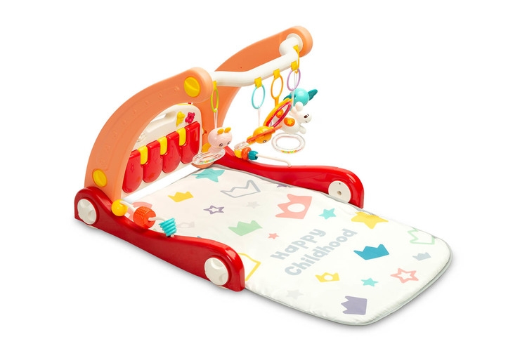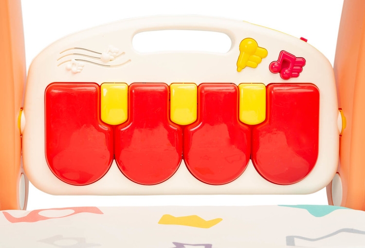 Hudobná podložka je vybavená oblúkom s hrkálkami v tvare roztomilých zvieratiek a zrkadlom, ktoré upúta pozornosť dieťaťa.