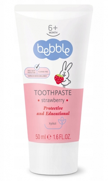 Okrem antibakteriálnych vlastností je xylitol známy aj svojou sladkou chuťou. Detská zubná pasta Bebble neobsahuje fluorid, konzervačné látky ani farbivá, vďaka čomu je pri prehltnutí neškodná. Okrem toho, že deti milujú jemnú jahovodú príchuť, pasta sa môže používať už od útleho veku.