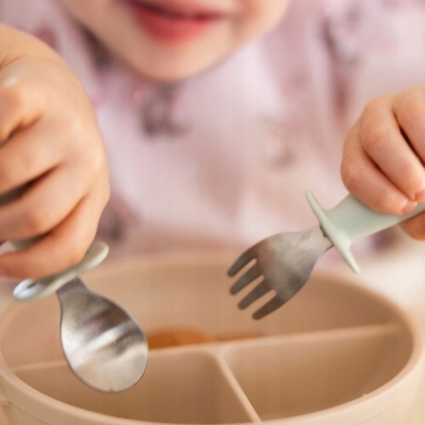 Sada bezpečných príborov pre vaše dieťa, ideálna na učenie sa samostatnému jedlu lyžicou a vidličkou.
