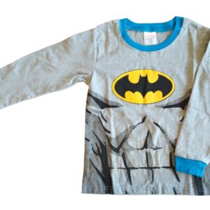 Tento pohodlný set se skládá z dlouhého trička a kalhot, které nejen zaujmou svým stylovým designem, ale také poskytnou maximální komfort při spánku i domácím odpočinku. Tričko má šedou barvu s ikonickým Batmanovým logem na hrudi a potiskem simulujícím svalnatý hrudník superhrdiny, díky čemuž se dítě bude cítit jako opravdový ochránce Gotham City. Kontrastní modrý lem u krku a na rukávech dodává outfitu stylový vzhled.
