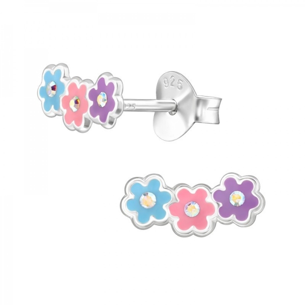 Detské roztomilé puzetové náušnice 3 Kvietky s kamienkami – perfektná voľba pre vašu malú princeznú.