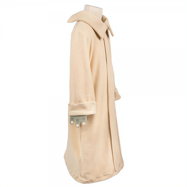 Maska je vyrobená zjemného a príjemného materiálu, ktorý je pohodlný na nosenie. Je zelené farby s typickými Yodovými ušami, ktoré sú kombinované s hnedou farbou pre realistický vzhľad. Detailná potlač dodáva maske vernosť a autentickosť, čo vám umožní sa plne ponoriť do úlohy tohto múdreho jediho. Súčasťou masky je jednoduché zapínanie na suchý zips pod krkom. Plášť je v béžovej farbe, vyrobený z príjemného fleecového materiálu, ktorý je mäkký. na dotyk a pohodlný na nosenie. Plášť je navrhnutý s golierom a zapínaním na zips v zadnej časti, čo uľahčuje obliekanie a vyzliekanie. Dlhé rukávy plášte sú zakončené prvkom napodobňujúcim Yodove ruky, ktoré sa upevňujú na gumičku, čo dodáva kostýmu ďalšiu úroveň detailu a autentickosti.