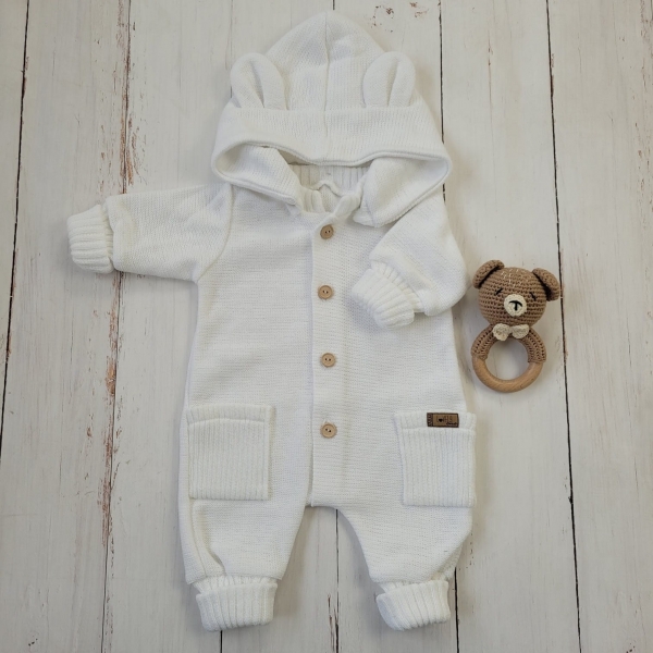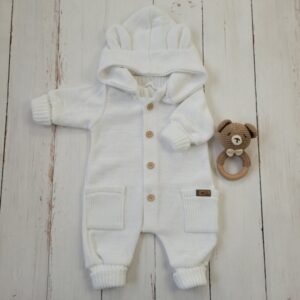 zdobená roztomilými uškami, dodáva overalu unikátny vzhľad.