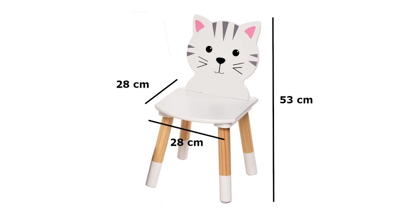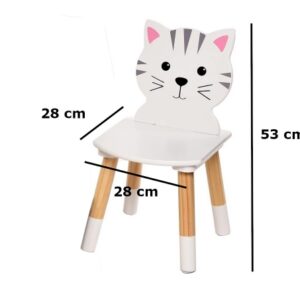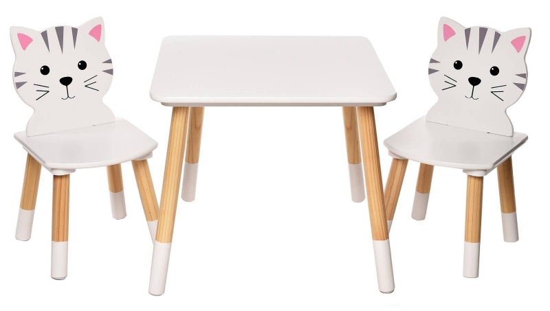 Nádherný detský stôl v bielom prevedení so stoličkami s motívom mačičiek. Stolček je ideálnym miestom pre hranie, maľovanie, občerstvenie alebo pre posedenie s kamarátmi. Originálny doplnok do detskej izby, praktický, prispôsobený detským potrebám. Nábytok je stabilný, ľahko sa čistí. Vhodný pre deti od 2 rokov. Vlastnosti