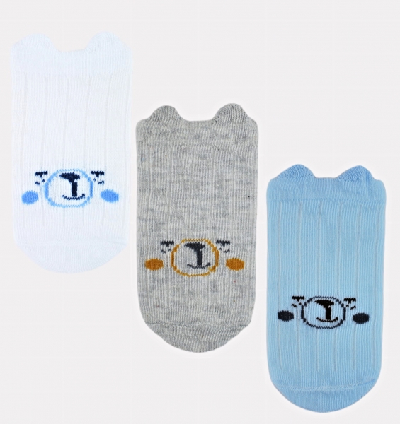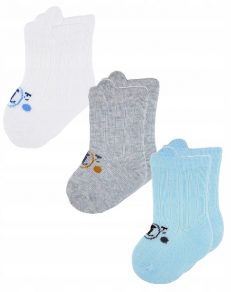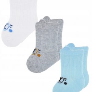 Dojčenské ponožky, 3 páry – Noviti – Medvedík, biela/modrá/sivá