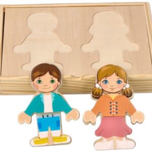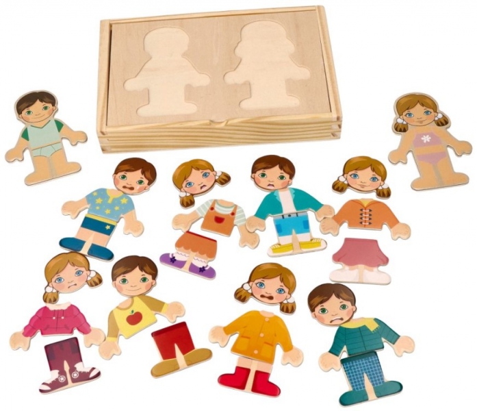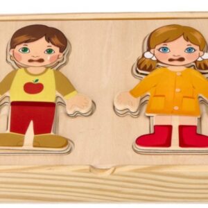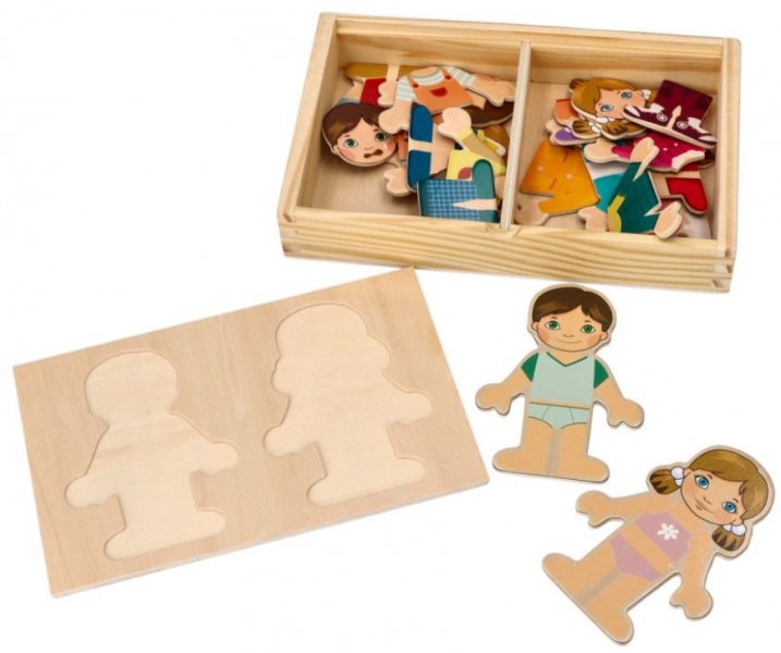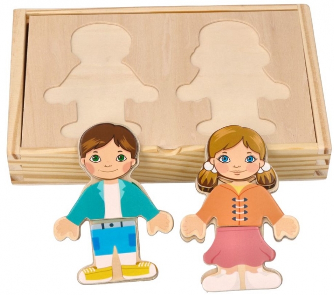 Drevená magnetická skladačka v obliekaní – Holka a chlapec.