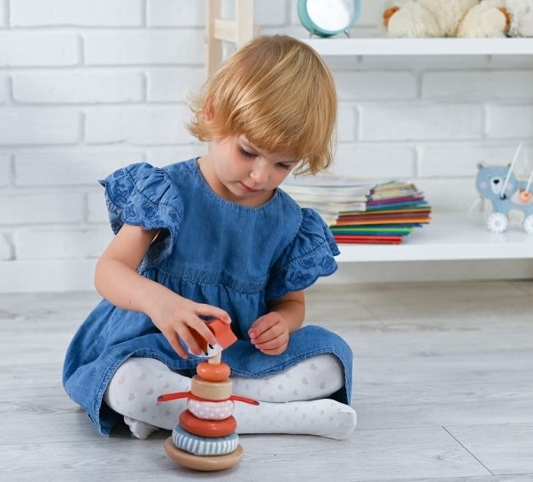 Krásna pyramída s motívom líšky od Adam Toys je klasickou drevenou hračkou pre každé batoľa.