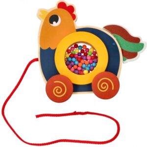 Tento pekný drevený kohútik poskytne vášmu dieťaťu nielen veľa príležitostí na hru, ale tiež podporí rozvoj motorickej koordinácie a motorických zručností. Batoľatá milujú ťahať niečo za sebou, a čím viac (a hlasnejšie) to je, tým častejšie a ochotnejšie sa naše dieťa začne pokúšať samostatne chodiť.