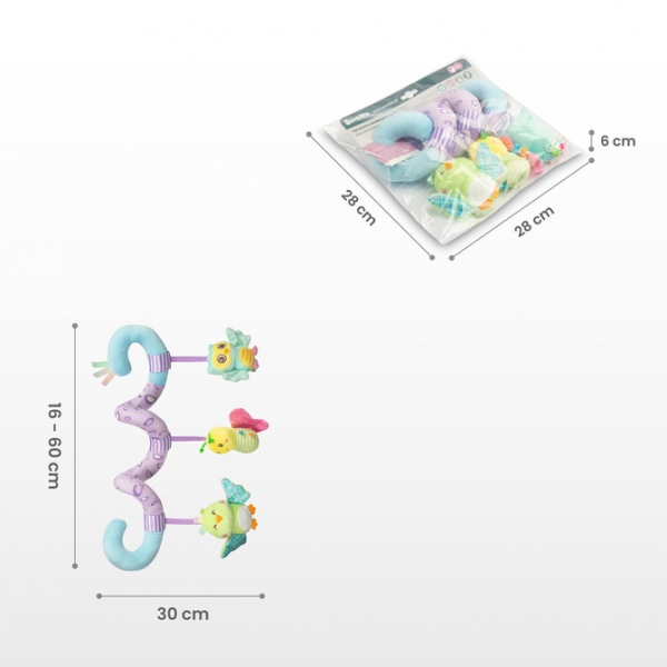Špirála je vybavená 3 visiacimi senzorickými hračkami, ktoré vaše bábätko zabavia a rozžiaria jeho deň. Kontrastné farby a interaktívne prvky stimulujú zmysly a prispievajú k rozvoju motorických schopností.