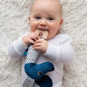 Na ušitie hračky boli použité látky rôznych štruktúr. Vďaka tomu dieťa spoznáva svet a rozvíja hmat. Nezabudlo sa ani na správny rozvoj zraku. Čiernobiela bavlna použitá na chrbte a ušiach rozvíja správne vnímanie farieb.