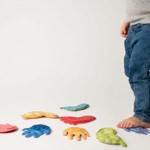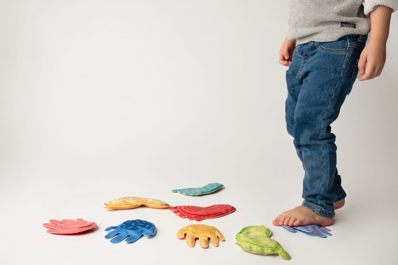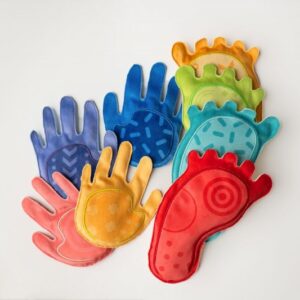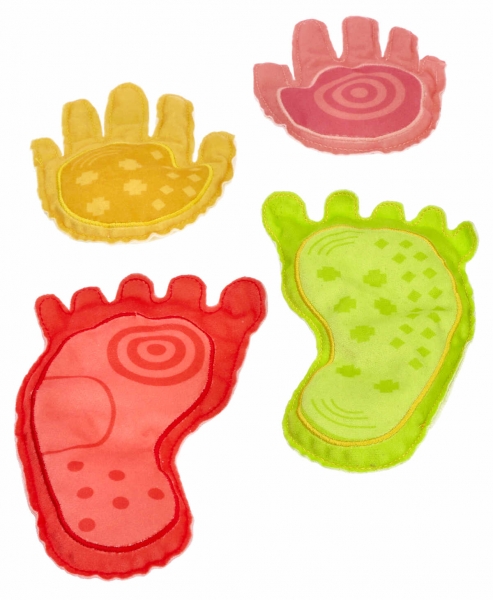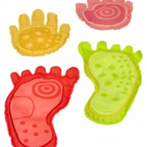 zmyslové vaky, zdokonaľovanie motoriky úchopom za prsty, hádzanie a prihrávanie alebo stavanie veže. Treťou možnosťou je odkaz na hru Twister, kde dieťa položí ruky a nohy na nohy a ruky hračky.
