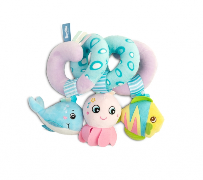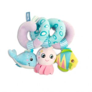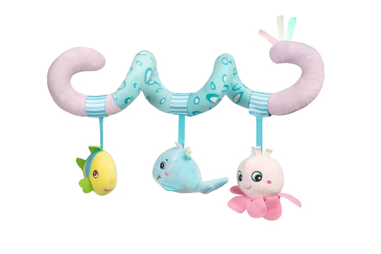 Táto závesná plyšová hračka s veselými zvieratkami zaujme vaše dieťa farebným spracovaním, jemnými materiálmi a zvukovými prvkami, ako sú pískatka, hrkálka a šuštiace krídla. Špirála sa ľahko pripevní na postieľku, kočík alebo autosedačku vďaka elastickému designu.