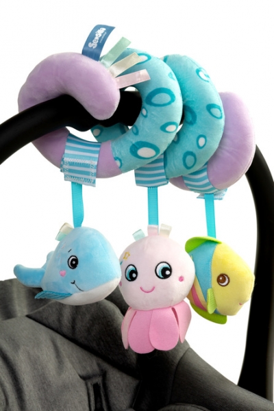 – Vhodná na zavesenie na postieľku, popruh kočíka alebo autosedačku.