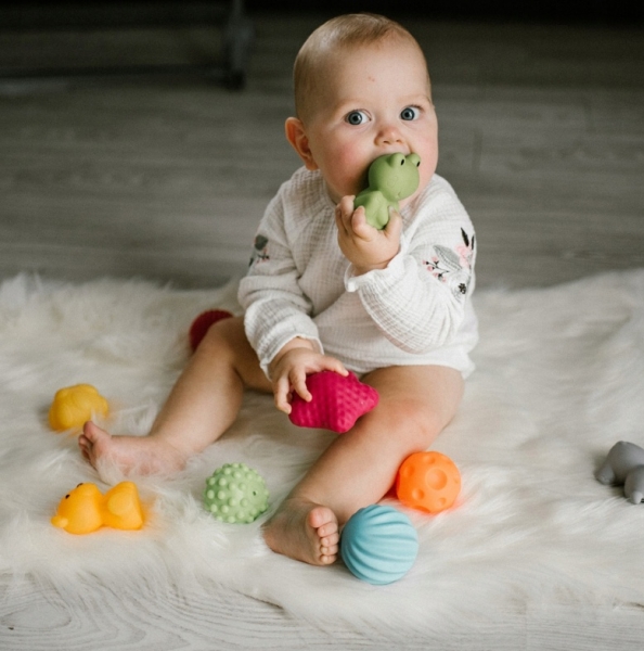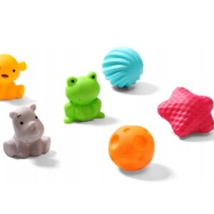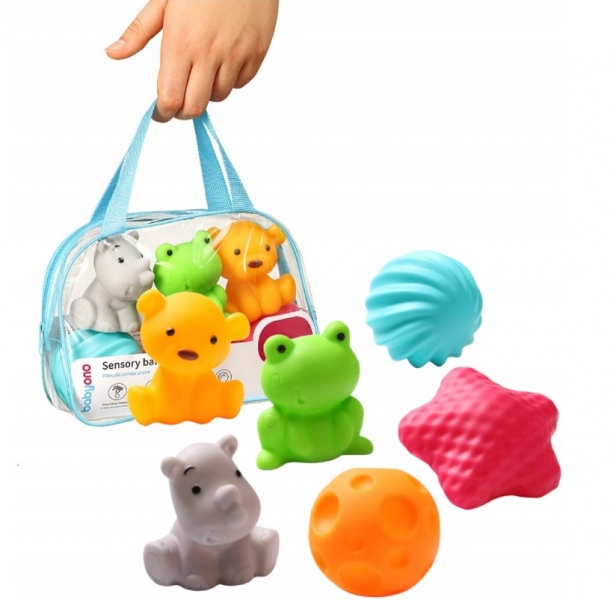 V balení 6 kusov – loptičky a zvieratká. Senzorické loptičky majú rôzne farby a textúry. Vďaka tomu stimulujú všetky detské zmysly. Pri prerezávaní zúbkov môže vaše dieťa používať loptičky na hryzenie a zmiernenie bolesti ďasien. Sú vyrobené zo silikónu, takže ich môžete ľahko udržiavať v čistote. Sú vyrobené z hygienického silikónu.
