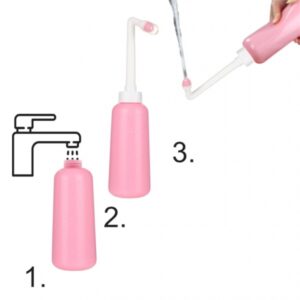 Jednoduché a pohodlné použitie – Stačí naplniť fľašu teplou vodou, nasmerovať trysku k intímnym partiám a jemne stlačiť fľašu, aby sa uvoľnil osviežujúci a jemný prúd vody.