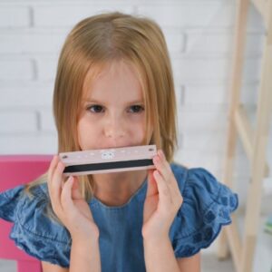 Fúkacia harmonika pre začínajúceho muzikanta zdobené roztomilým zajačikom.