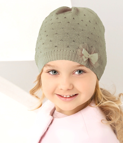 Háčkovaná čiapočka s mašličkou a kamienkami.