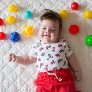 Loptičky sú ideálne pre jemnú a príjemnú masáž. Pri držaní loptičky alebo šliapaním na neho bosými nožičkami stimuluje rozvoj zmyslov dieťaťa a pomáha rozvoju rovnováhy.