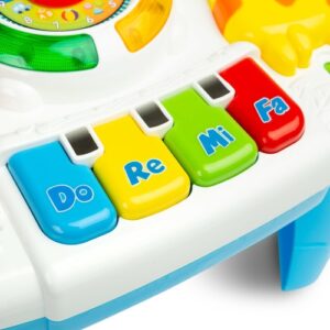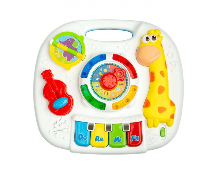 Hračka je vybavená reproduktorom, ktorý hrá mnoho melódií, keď sa dieťa dotýka jej prvkov.