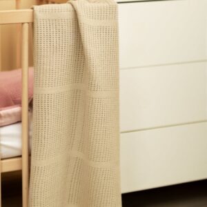 Elegantný ažúrový vzor dodáva deke moderný vzhľad, ktorý skvele zapadne do každej detskej izbičky. Pastelová farebná škála ladí s útulnou atmosférou a osloví rodičov, ktorí hľadajú praktické, ale zároveň štýlové riešenie pre svoje deti.