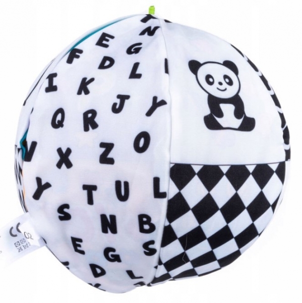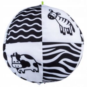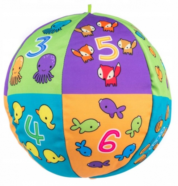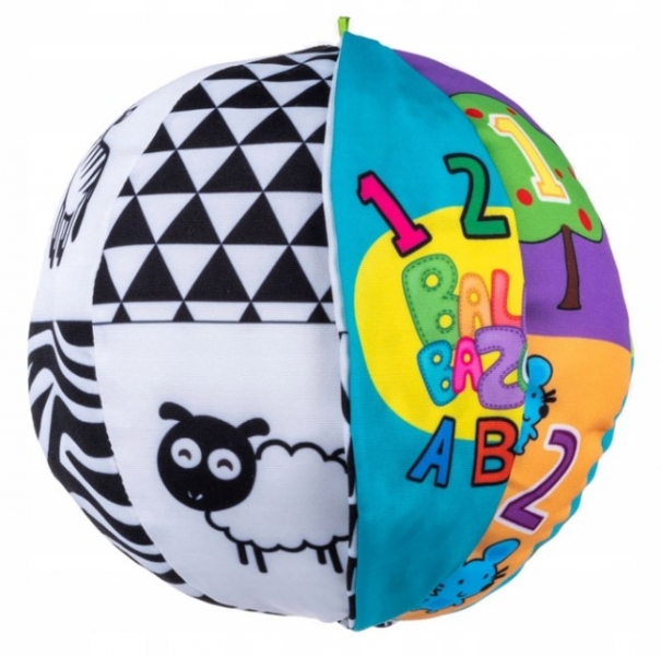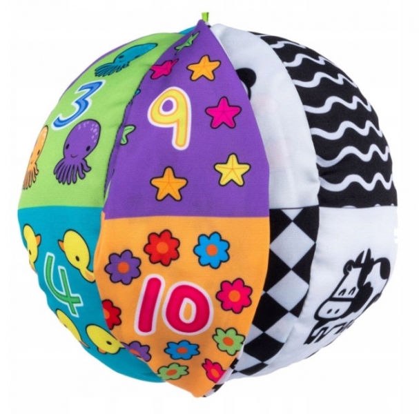 Obojstranná loptička je obľúbená hračka. Balónik rastie s dieťaťom! Keď je mladšia, môžeme ho otočiť na čiernobielu stranu. Kontrastné farby stimulujú zrak dieťaťa a čísla umiestnené na stenách pomôžu spojiť zábavu s učením. Keď dieťa povyrastie, môžeme ho otočiť na druhú, farebnú stranu. Nájdeme tu množstvo obrázkov zobrazujúcich čísla so zodpovedajúcim počtom prvkov. Pri hádzaní sa ozve príjemný zvuk zvončekov.