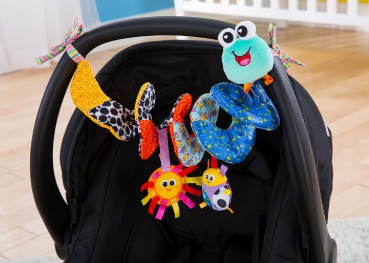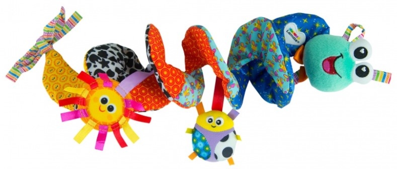 Mäkká textilná špirála sa ľahko omotá okolo rukoväte kočíka alebo autosedačky. Počas jazdy sa na špirále bude pohupovať hrkajúca lienka. Špirála je vyrobená z rôznych druhov a farebných materiálov, ktoré stimulujú zrak, hmat a rozvíja motoriku