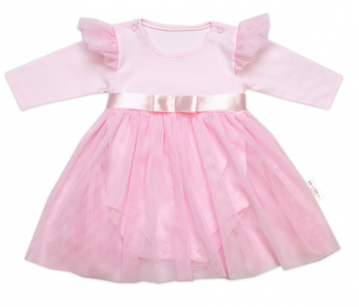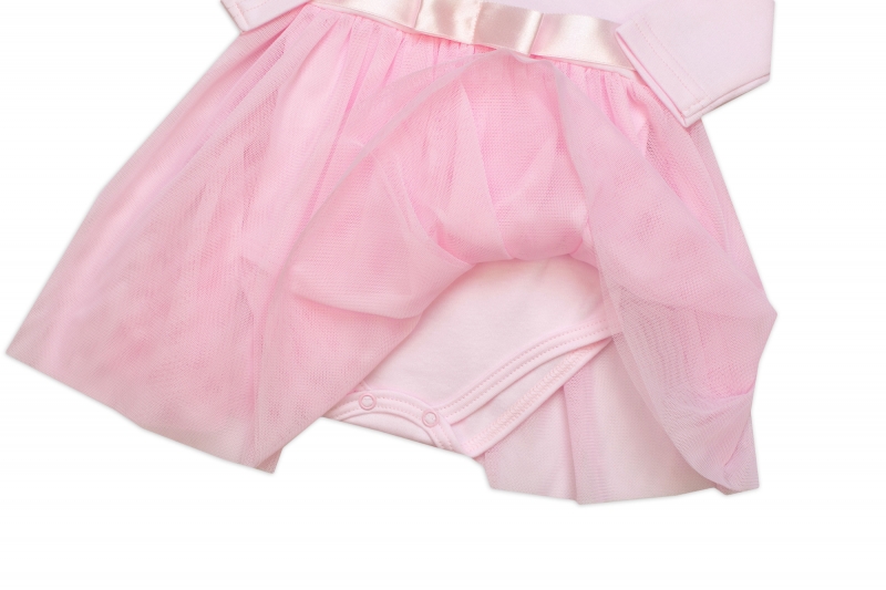 Set sa skladá z detského body s dlhým rukávom, ktoré je vyrobené z prémiového materiálu – 95% bavlna a 5% elastan, doplneného jemným tylom.