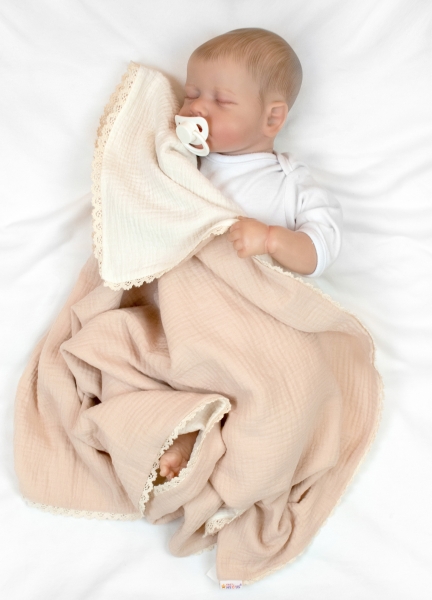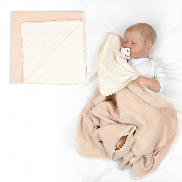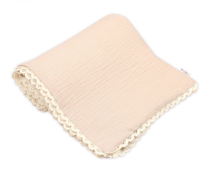 Predstavujeme Vám „Luxusnú mušelínovú deku s čipkou Nature 80x80cm – béžová/smotanová“ od Baby Nellys – dokonalú kombináciu elegancie, praktickosti a bezpečia pre Vašich najmenších.