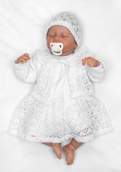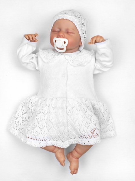 Luxusná pletená sada pre dievčatko na krstiny a oslavy, alebo na cestu z pôrodnice – 3D Design.