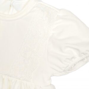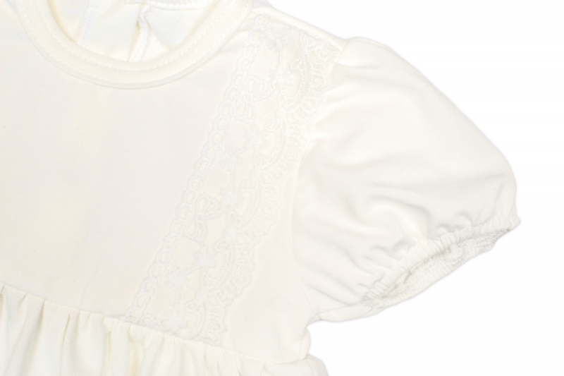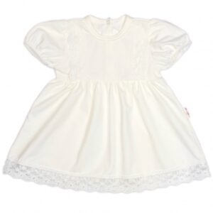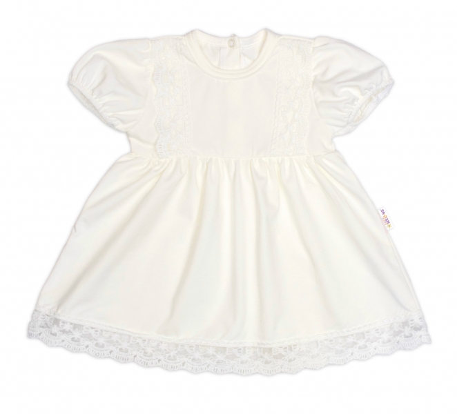 Bavlnené šatočky v bielej farbe s jemným čipkovaným zdobením a krátkym rukávom.