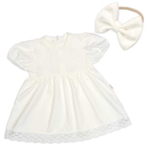 Bavlnené šatočky s čelenkou Baby Nellys — elegantný komplet pre bábätká | Luxusné Šaty s čipkou.