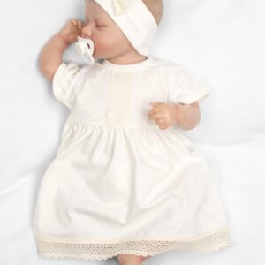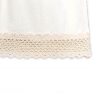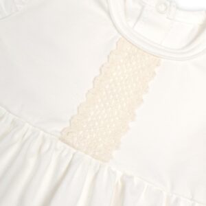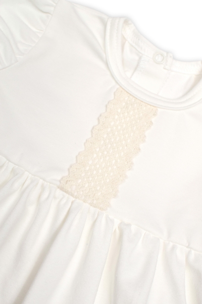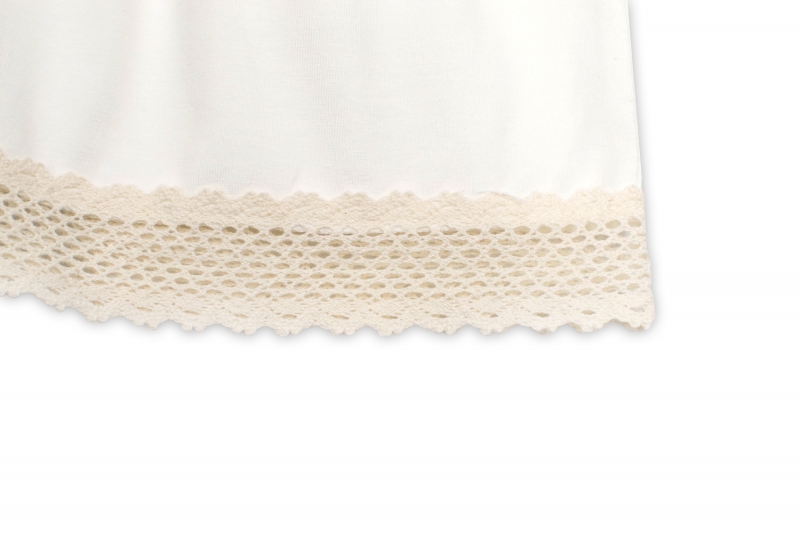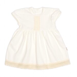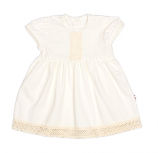 Bavlnené šatočky v smotanové farbe s jemným čipkovaným zdobením a krátkym rukávom.