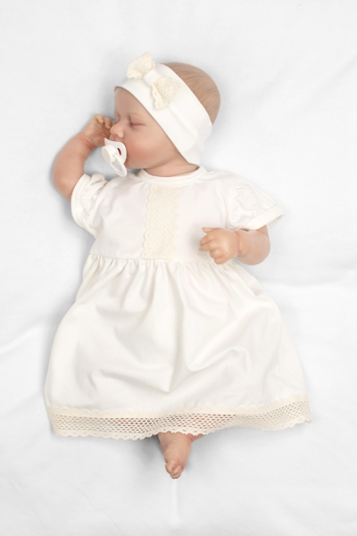 Bavlnené šatočky s čelenkou Baby Nellys — elegantný komplet pre bábätká | Luxusné Šaty s čipkou.