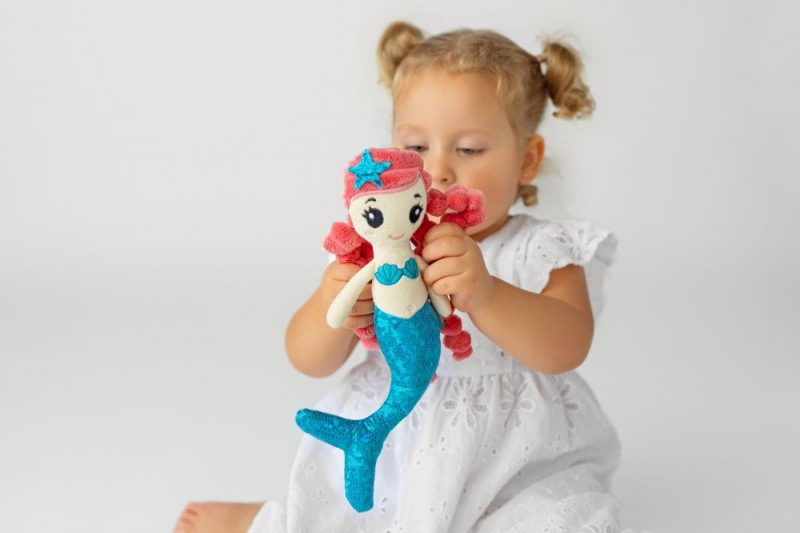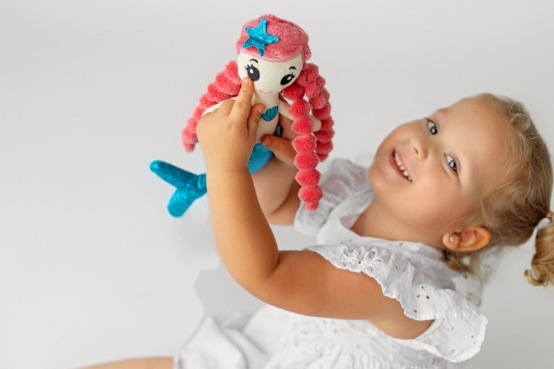 Mäkká, handrová morská panna Emma z Mom’s Care bola vytvorená s ohľadom na všetky dievčatá. Búrka ružových kaderí, hviezda vo vlasoch a lesklá šuštiaca plutva sú jej poznávacie znamenie. Maskot je perfektný ako prvá bábika pre malé dieťa. Je tiež skvelý ako plyšová hračka, ktorá vám pomôže rýchlo zaspať. O chvíľu sa stane prvou kamarátkou vašej dcéry a bude s ňou chodiť po svete. Umožní vám zábavu, ktorej jediným obmedzením je vaša predstavivosť.