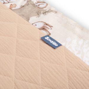 Mantinel je vyrobený z mäkkej bavlny s potlačou a jemného mušelínu, ktorý je príjemný na dotyk.